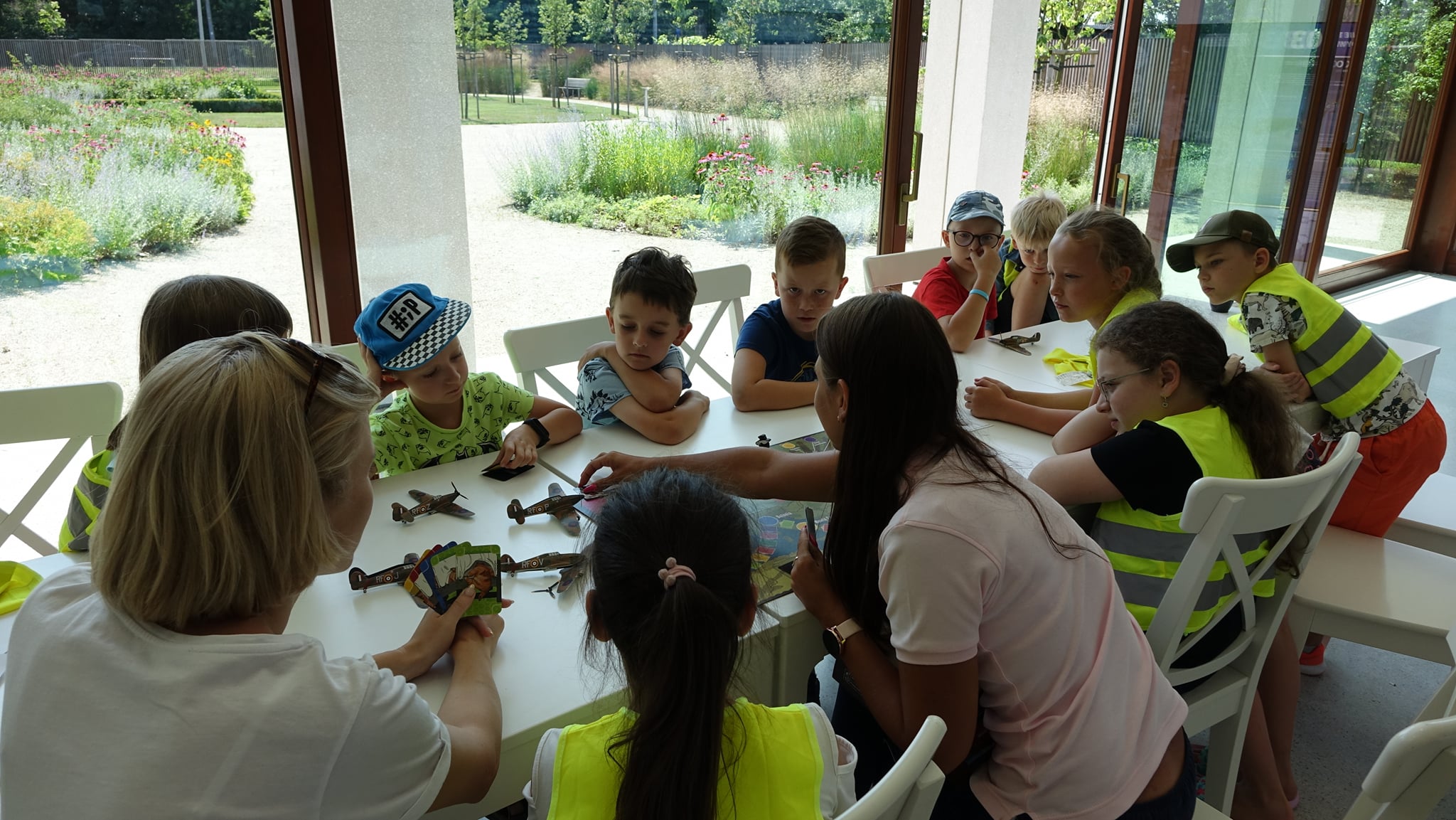 Dzieci zostały oprowadzone po naszym muzealnym ogrodzie przez Paulinę Iwanowską. Największą frajdę sprawiło jednak polowanie na motyle (spokojnie, żaden motyl nie ucierpiał podczas tej aktywności).